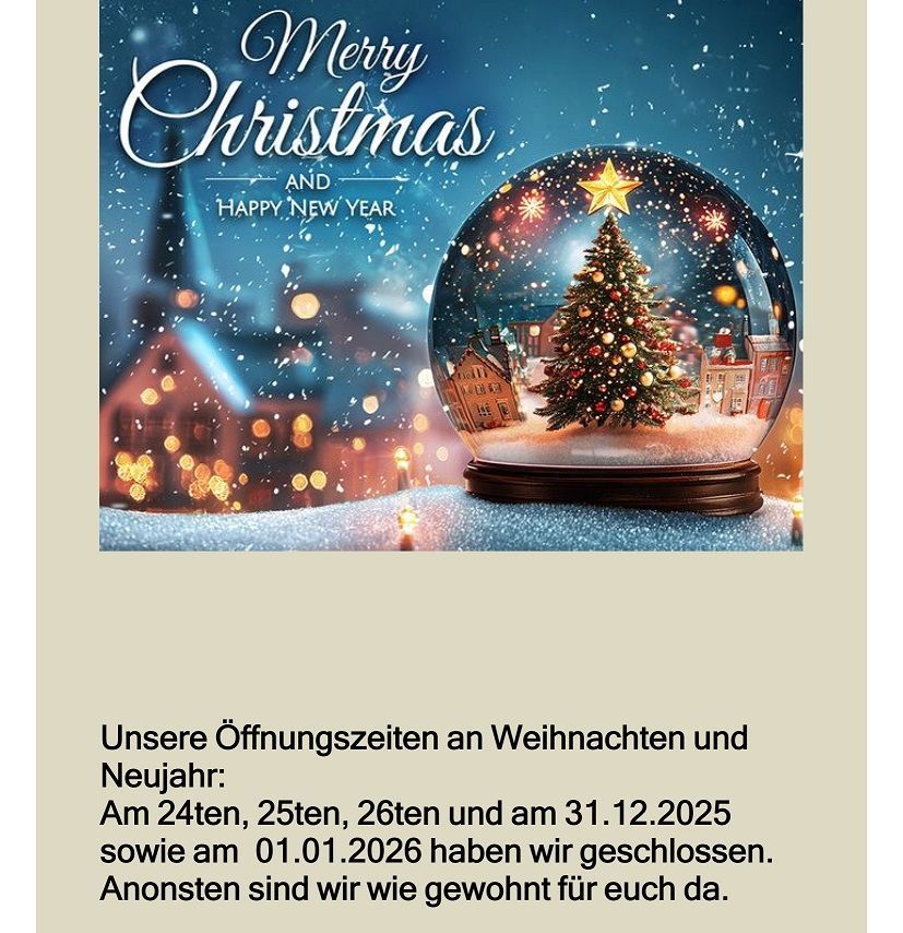 Feiertage, sowie Samstage und Sonntage geöffnet von 14.00 bis 22.00 Uhr